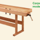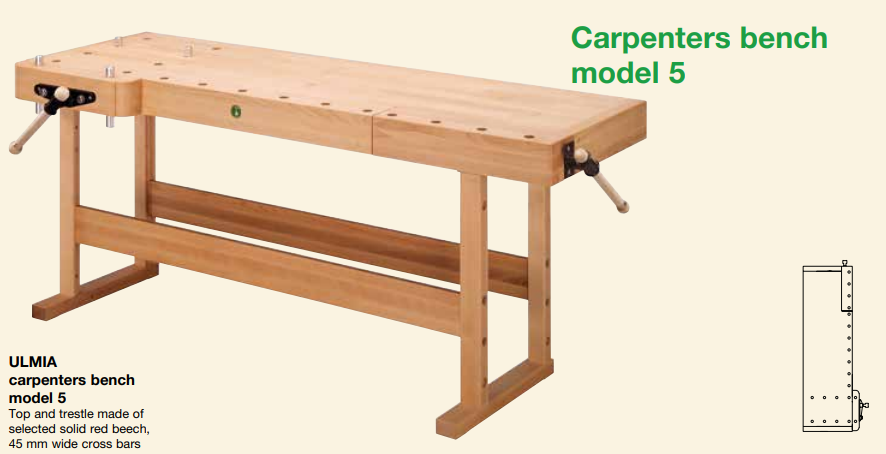 Topo e cavalete feitos de faia vermelha maciça selecionada, barras transversais de 45 mm de largura nos lados da face, topo sem rebaixo de armazenamento, superfície encerada e polida.