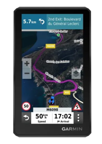 Aceda2 a informações de trânsito e meteorologia em tempo real, partilhe rotas com outros motociclistas e receba notificações do telemóvel através da aplicação Garmin Drive