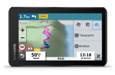 Alterne rapidamente entre os mapas de estrada, os mapas topográficos e as imagens de satélite BirdsEye Direct para utilizar sempre o mapa perfeito para a sua viagem.