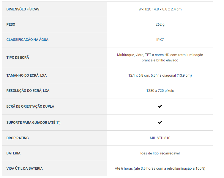 O ecrã de 5,5 polegadas é mais brilhante do que o ecrã dos modelos anteriores e pode ser utilizado em qualquer condição de luz. Também pode ser utilizado com luvas e dispõe de uma resolução HD nítida no modo vertical ou horizontal.