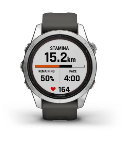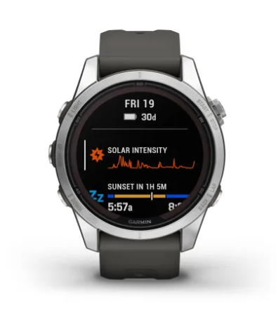 Obtenha até 14 dias no modo de smartwatch com carregamento solar quando exposto a 3 horas de luz solar direta (50 000 lux) por dia e até 46 horas no modo de GPS com carregamento solar (assume uma utilização contínua durante todo o período em condições de 50 000 lux).