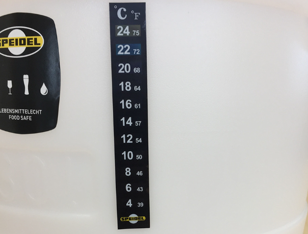 Fita termómetro ‘ Adequado para todos os barris de mosto Speidel ‘ Dimensão 13x2cm ‘ °Celsius e Fahrenheit ‘ 4°C-24°C