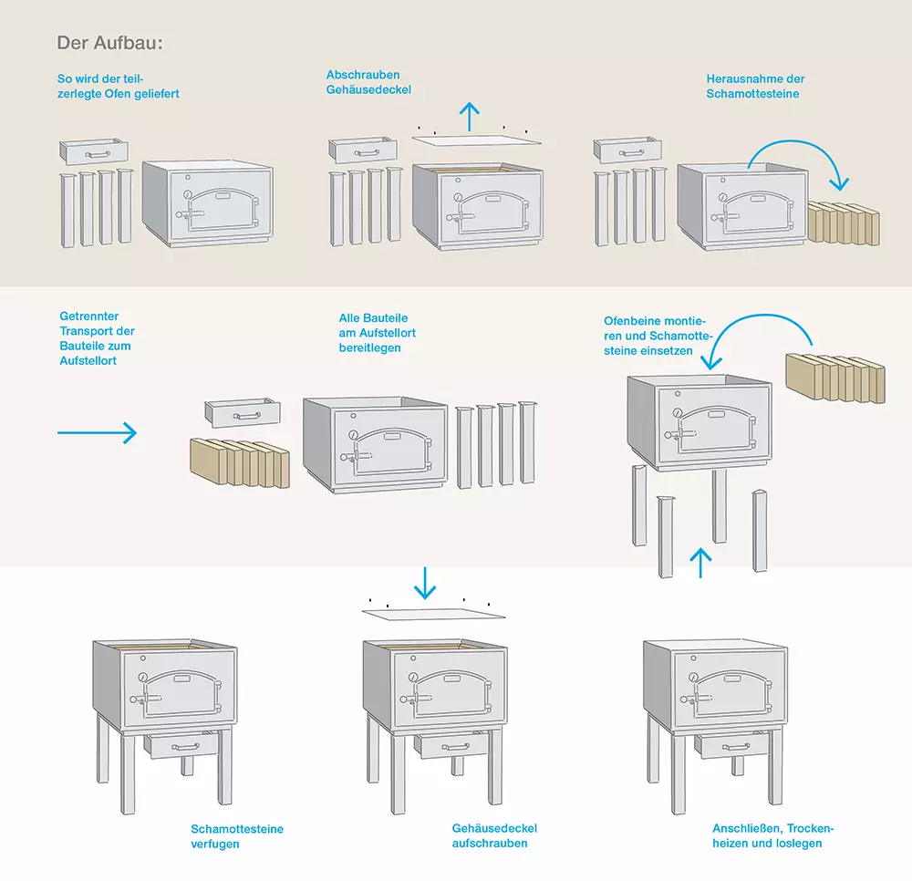Um fogão HABO é pesado. Isto pode ser problemático quando se sobe escadas ou em alguns cantos do local de instalação. É por isso que também se pode receber o fogão parcialmente desmontado. O invólucro e os tijolos refractários vêm separadamente e só são montados por si no local final.