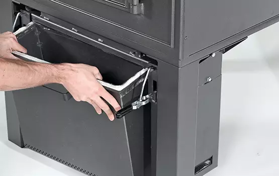 Queimador de pellets: inclui recipiente de armazenamento para um processo de cozedura, câmara de combustão e caixa de cinzas