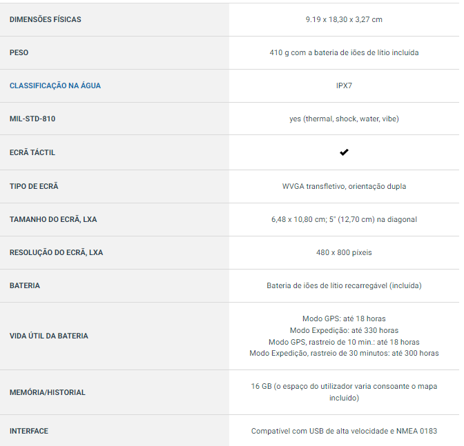 Este dispositivo portátil duradouro e resistente à água foi testado de acordo com as normas militares dos EUA e possui um ecrã tátil de 5” que pode ser utilizado com luvas e é 50% maior do que o ecrã dos modelos Montana anteriores.