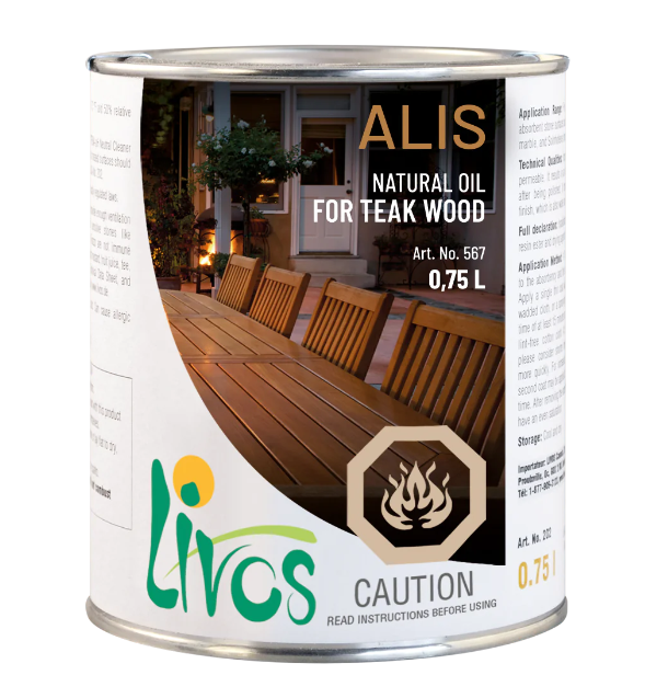 ALIS SPECIAL TEAK OIL da LIVOS nutre e realça a essência natural da madeira de teca. Especialmente adaptado para proteger e manter madeiras exóticas, ALIS SPECIAL TEAK OIL é um óleo límpido e incolor com propriedades impermeabilizantes. Oferece proteção superior e durável contra manchas e humidade, para que os seus móveis de teca permaneçam em perfeitas condições por muito tempo.