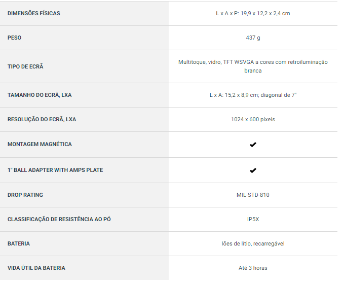 O Overlander foi criado em conformidade com a norma militar 810 dos EUA relativa à resistência térmica e a impactos. Pode ser instalado em qualquer lugar graças ao suporte magnético com alimentação que inclui uma ventosa e um adaptador de bola de 1″ com placa AMPS compatível com sistemas de montagem RAM.